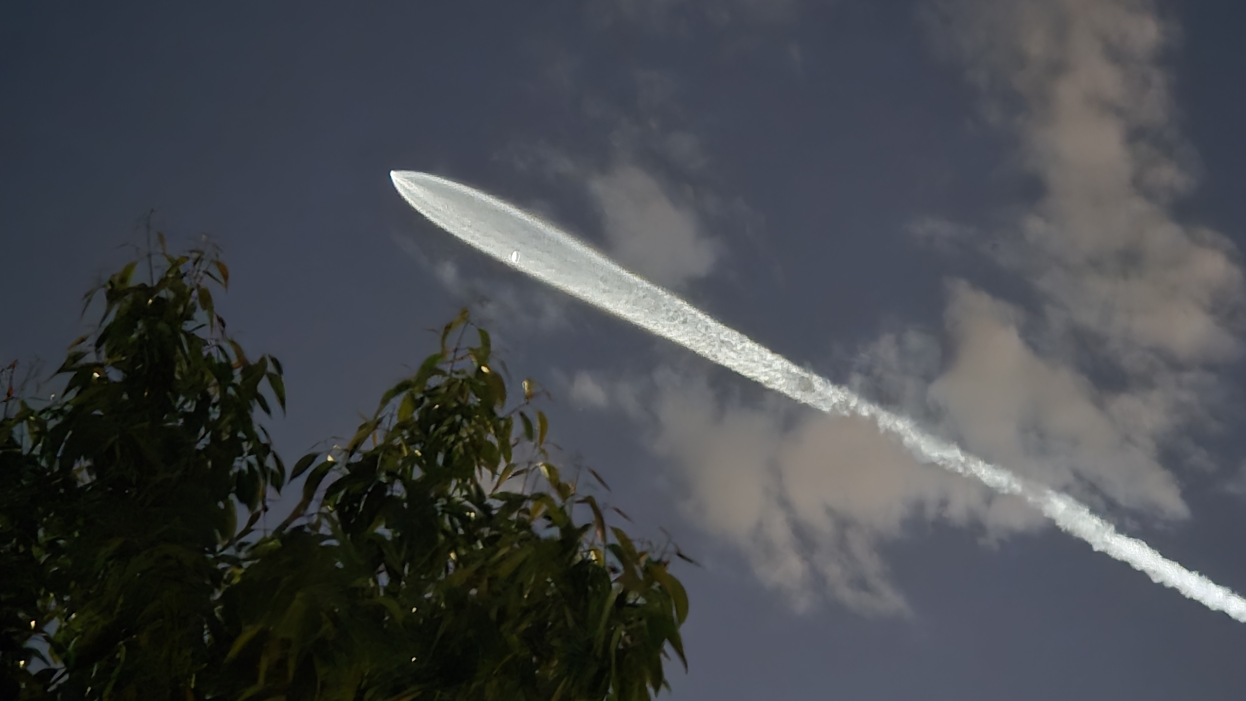 So, of course, the second stage's southwesterly trajectory carried it into the sunlight, and as it happened, there